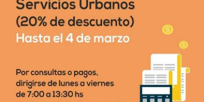 PRÓRROGA en el pago anual de las Tasas en Servicios Urbanos (20% de descuento)