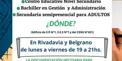 ¿Querés terminar la secundaria? Inscribite en el CENS Nº451