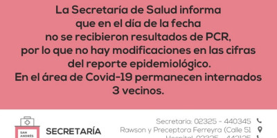 No se recibieron resultados de PCR en el día de hoy
