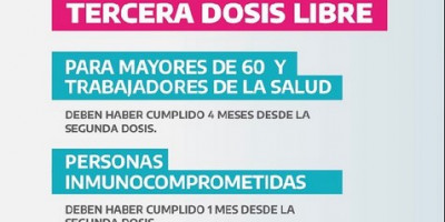 Tercera dosis libre para mayores de 60 años y trabajadores de la salud