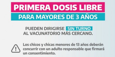 PRIMERA DOSIS DE VACUNA CONTRA EL COVID-19 LIBRE PARA MAYORES DE 3 AÑOS