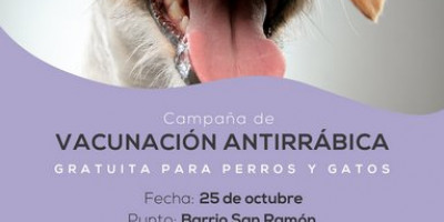 Vacunación Antirrábica gratuita este 25 en el barrio San Ramón