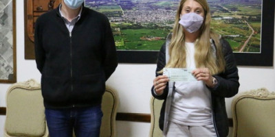 El intendente municipal Carlos Puglelli entregó materiales tecnológicos a la E.E.S N 8