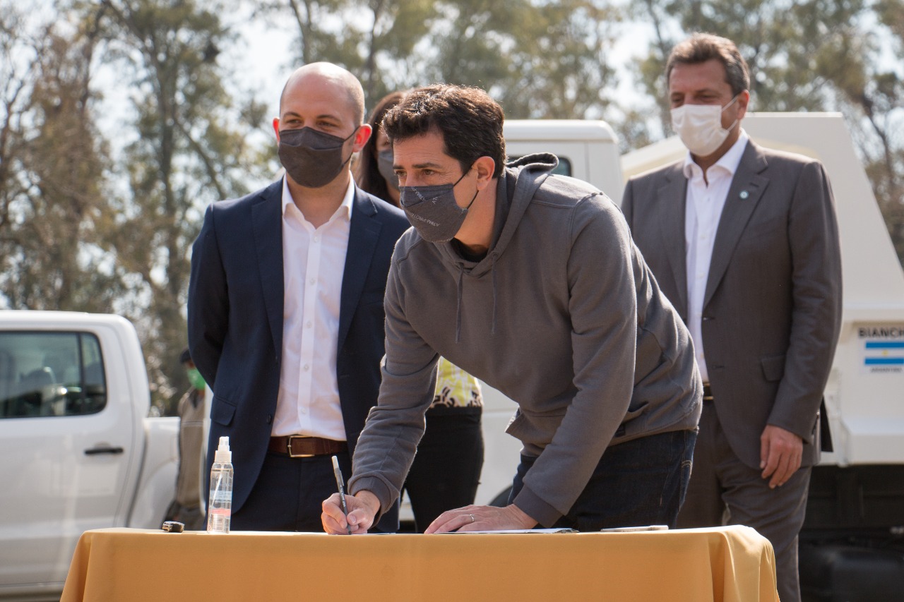 El intendente Municipal Carlos Puglelli recibió en nuestro distrito al presidente de la Cámara de Diputados de la Nación Sergio Massa y al ministro del Interior Eduardo de Pedro. Este encuentro tuvo motivo en el marco de la firma del convenio “Programa Federal Municipios de Pie” por el cual llegan a San Andrés de Giles recursos económicos en el orden de los 40 millones de pesos que serán destinados a asfaltado y reparación de calles en la planta urbana y localidades del partido.