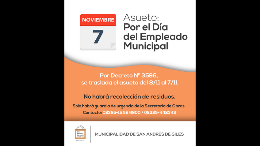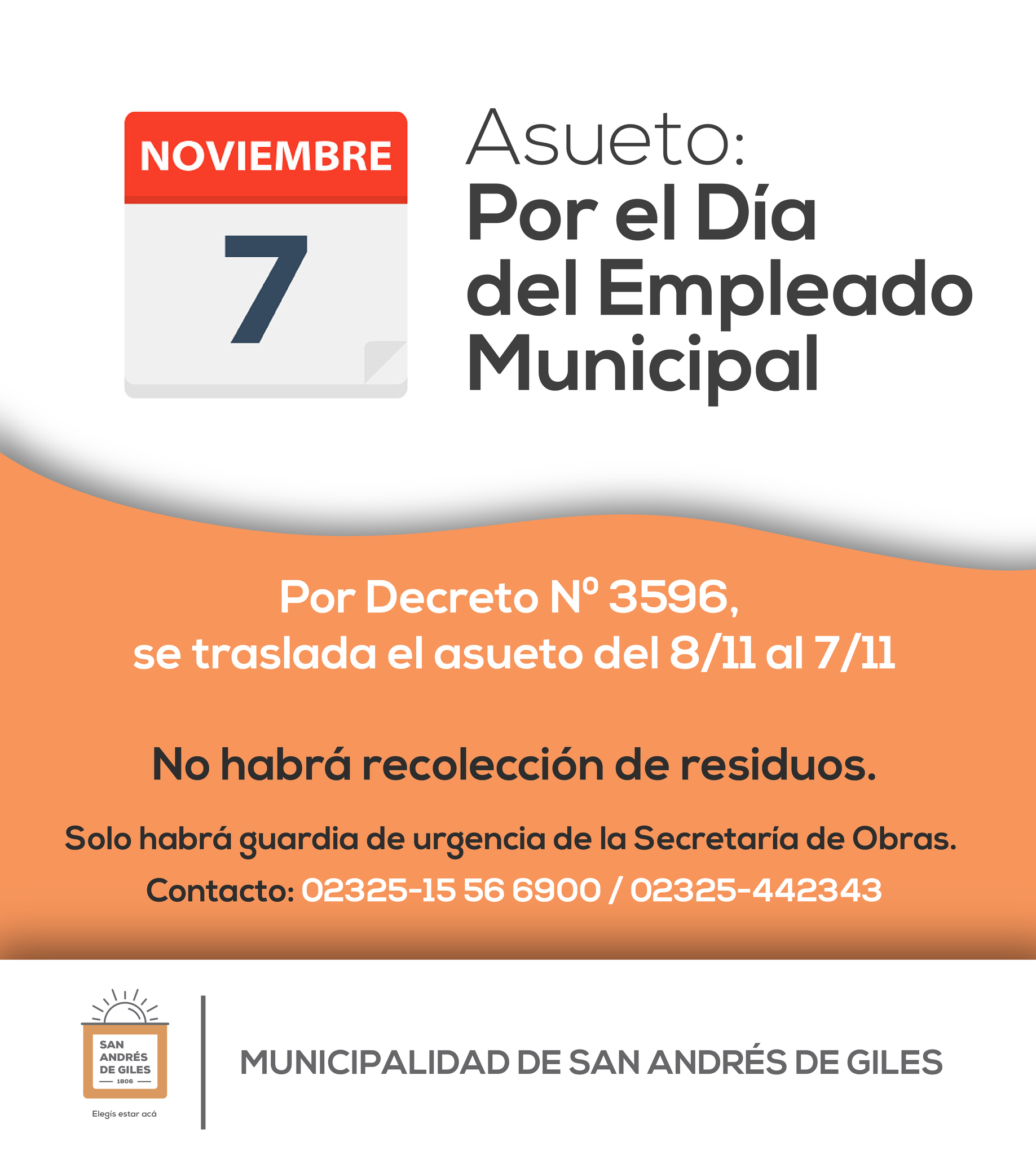 7 de noviembre: ASUETO MUNICIPAL por el DÍA DEL EMPLEADO MUNICIPAL