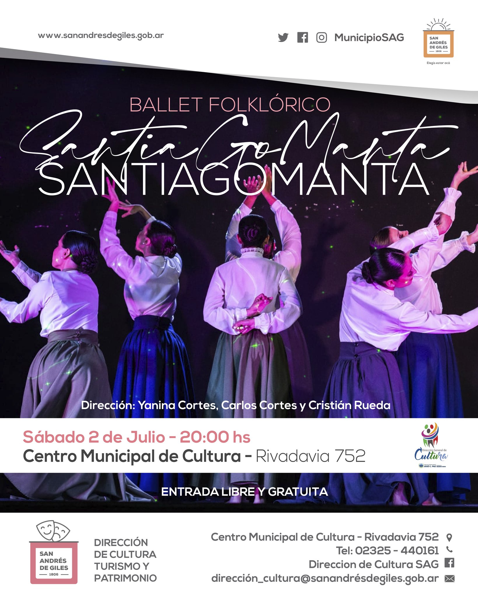 El mismo sábado 2 de julio, a las 20:00 horas, en el Centro de Cultura, Rivadavia 752, viví el show “SANTIAGOMANTA” de la mano del ballet folclórico de la ciudad de José C. Paz.