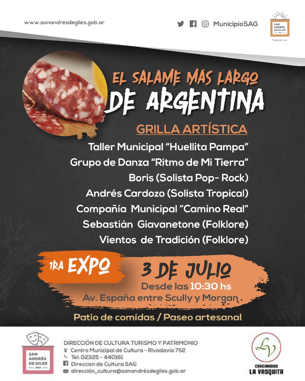 Organizado por Chacinados La Vasquita, con el auspicio de la Municipalidad, se hará la presentación del Salame más largo de Argentina, de 138 metros, para romper el récord.