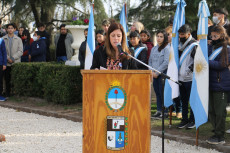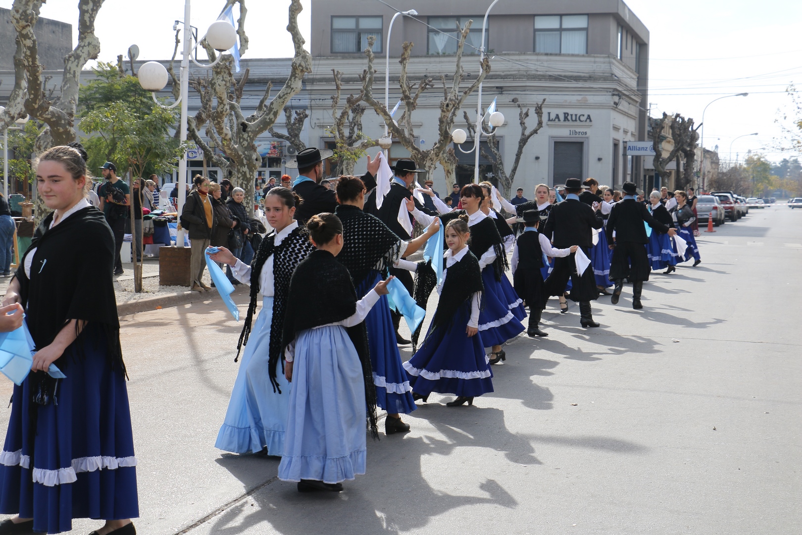 446 alumnos de cuarto año de las escuelas locales hicieron su promesa de fidelidad a la bandera, ante instituciones, autoridades y vecinos presentes. La promesa fue tomada por la jefa Distrital de Educación Valeria Zapico.