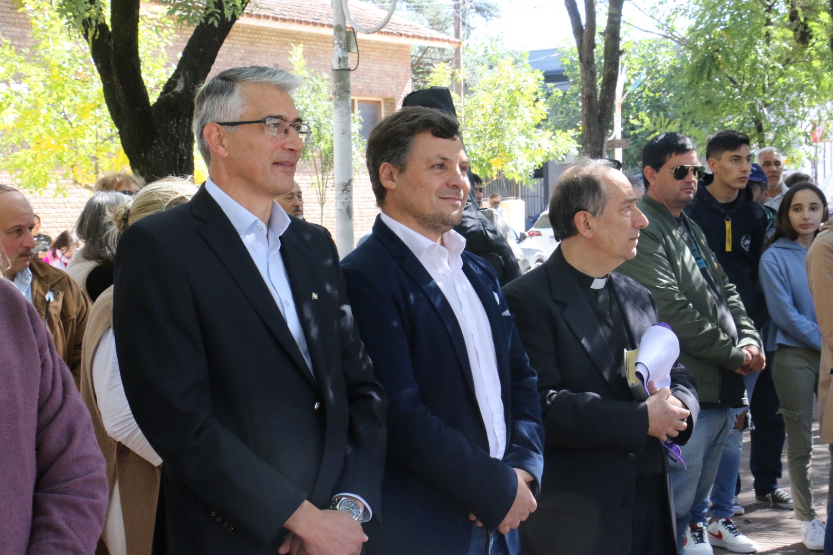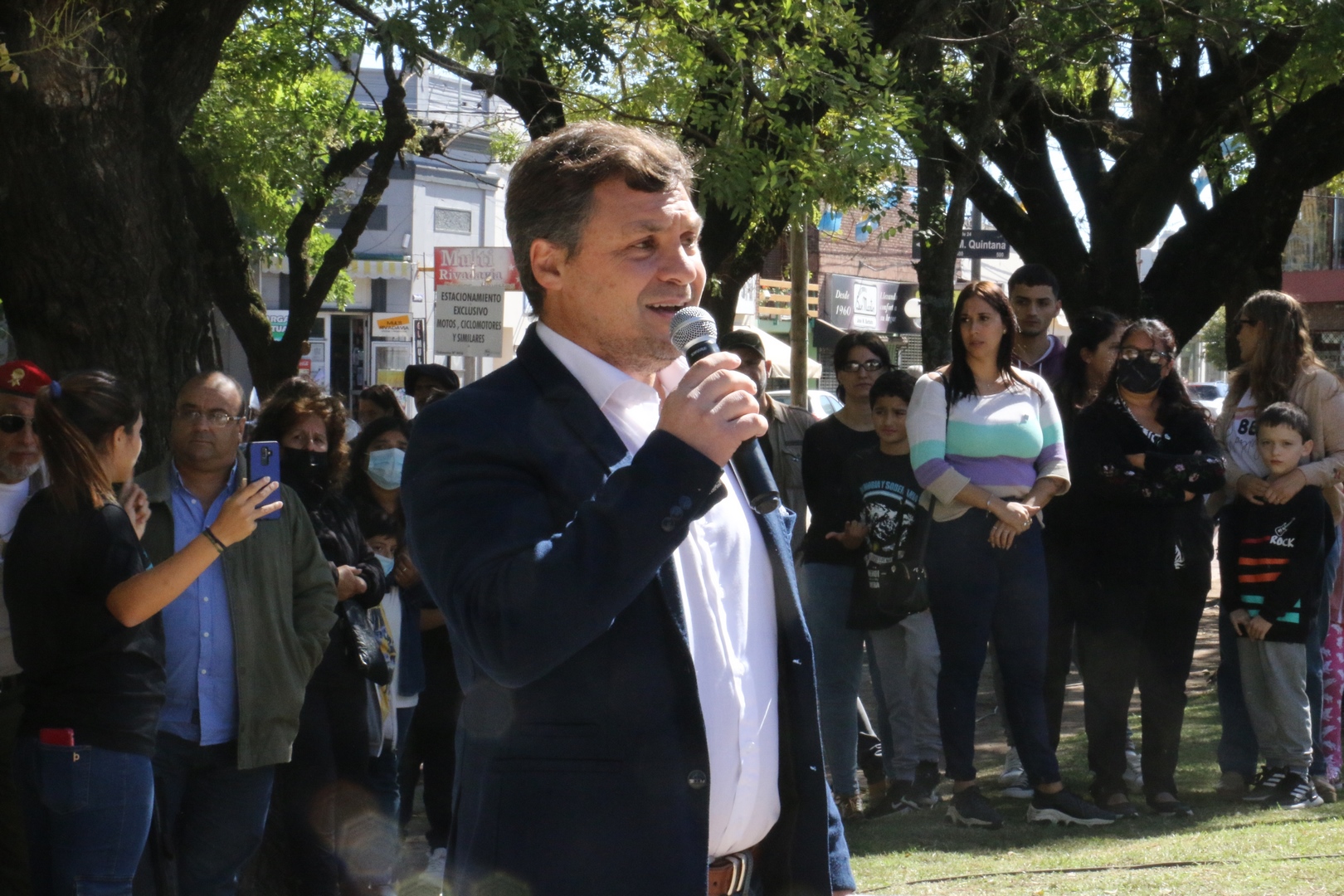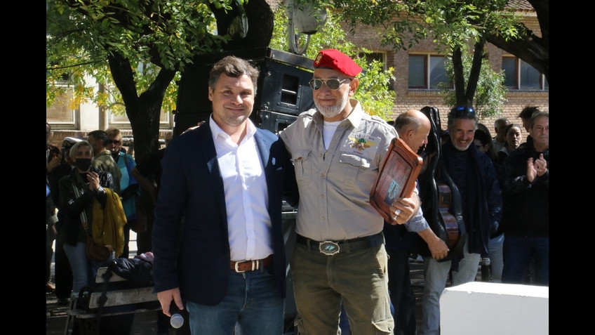 El intendente Miguel Gesualdi estuvo a cargo del toque de silencio, entregó una ofrenda de laurales y reconoció al veterano de guerra mendocino ‘‘EL GAUCHO RIVERO’’, músico oriundo de Mendoza que acompañó este evento local.