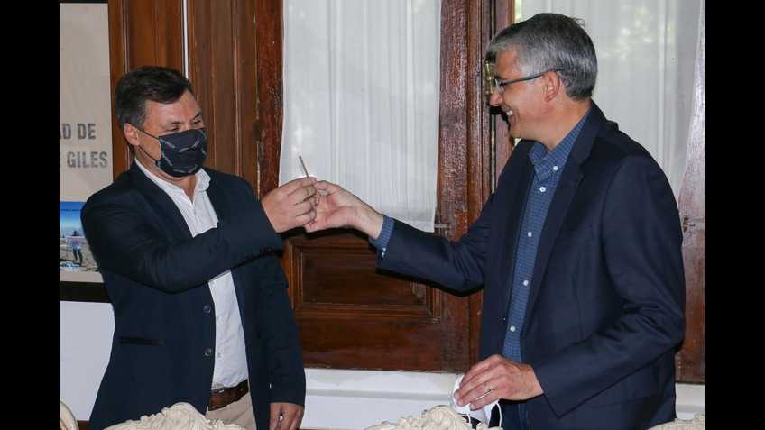 En la mañana de hoy se llevó adelante el traspaso de poderes entre el intendente saliente Carlos Puglelli y el intendente entrante, de manera interina, Miguel Gesualdi.