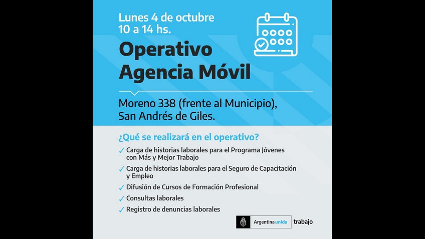 Operativo Agencia Movil: Dirigido a Jóvenes de 18 a 24 años de edad con estudios secundario completos en situación de desempleo.
