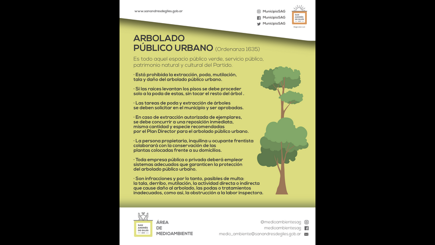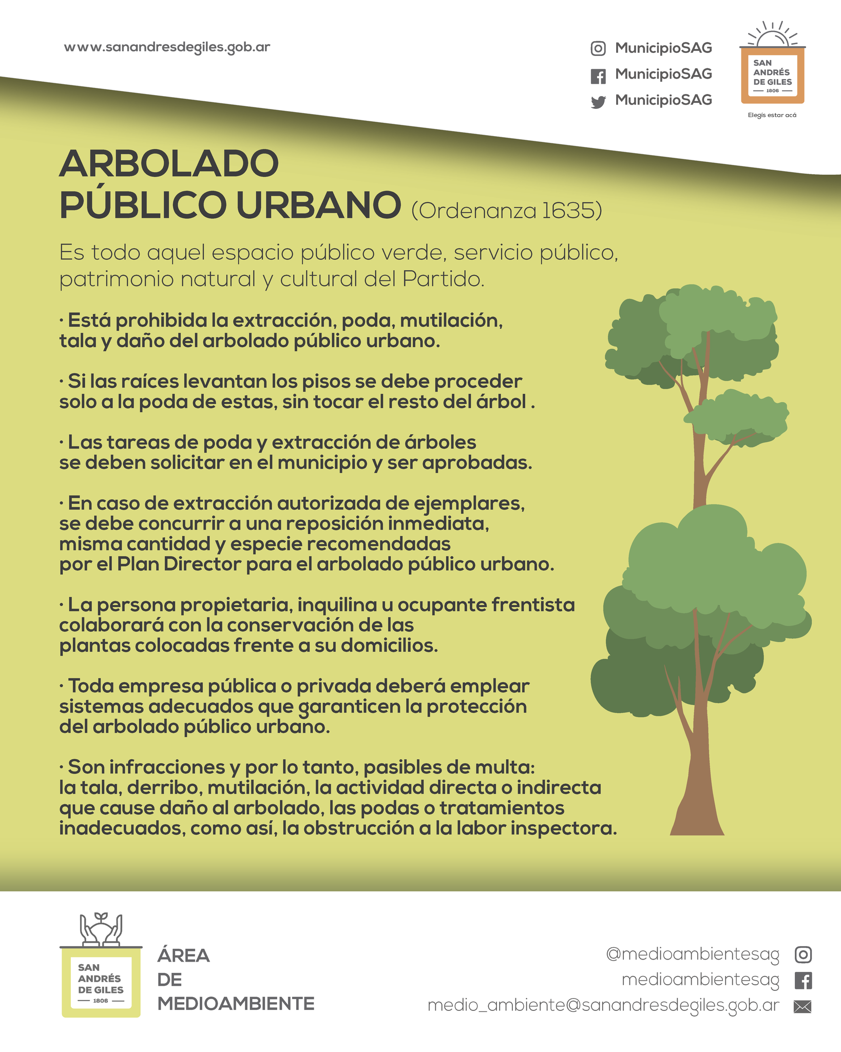 · Está prohibida la extracción, poda, mutilación, tala y daño de ejemplares del arbolado público urbano.