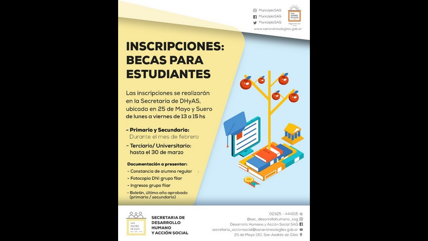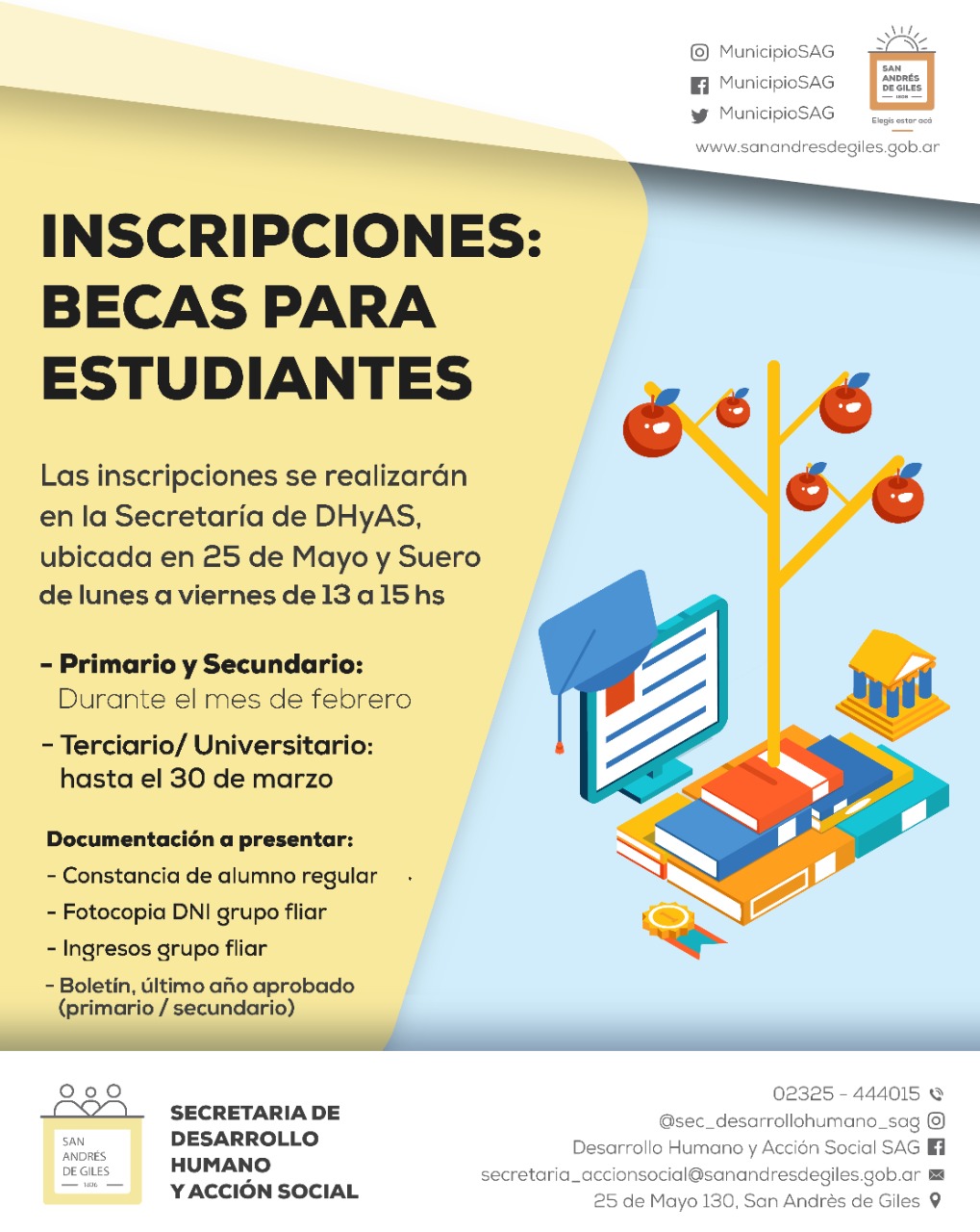 La Municipalidad otorga todos los años becas para alumnos de los niveles primario, secundario, terciario y universitario. Para ello te informamos las fechas y lugares donde inscribirte.