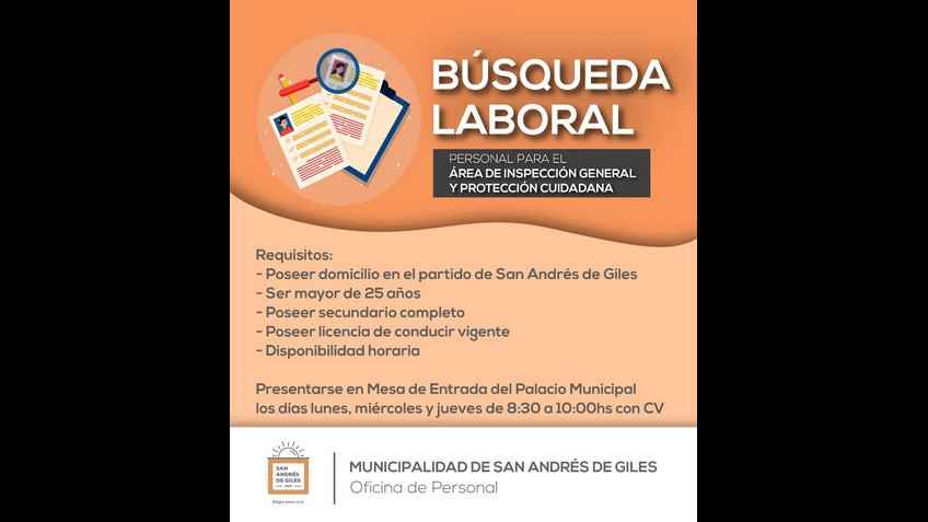 2- Se necesita personal para el área de Inspección General y Protección Ciudadana