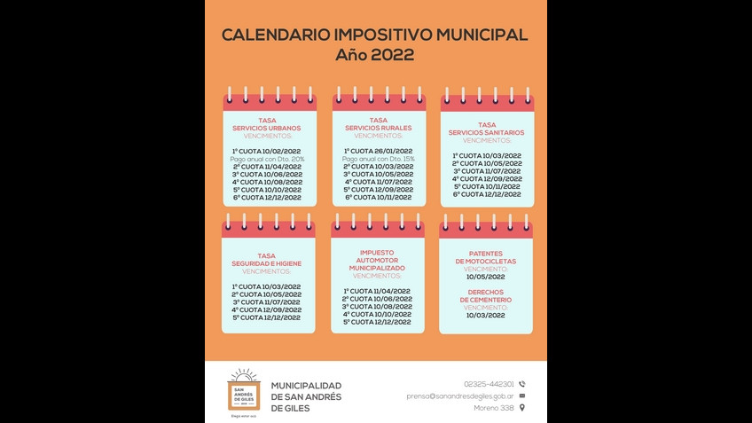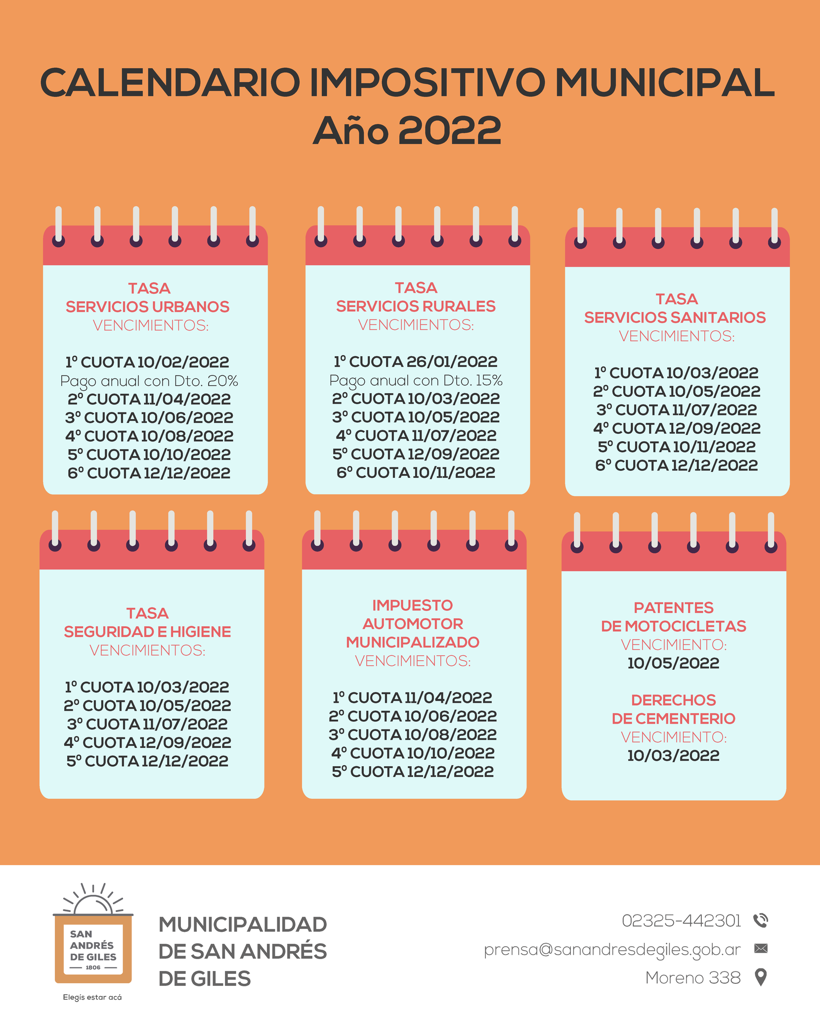 Todas las fechas para el pago de Tasas e Impuestos municipalizados.