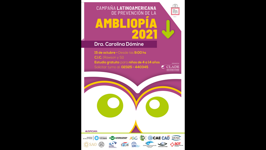 El día 15 de octubre se celebra el DIA MUNDIAL DE LA PREVENCION DE LA AMBLIOPIA, y en el CIC desde las 9 horas se estará brindando un estudio gratuito de prevención para niños de 4 a 14 años.