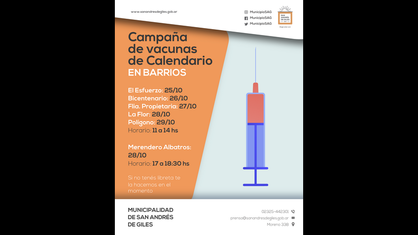 Campaña de VACUNAS DE CALENDARIO en BARRIOS