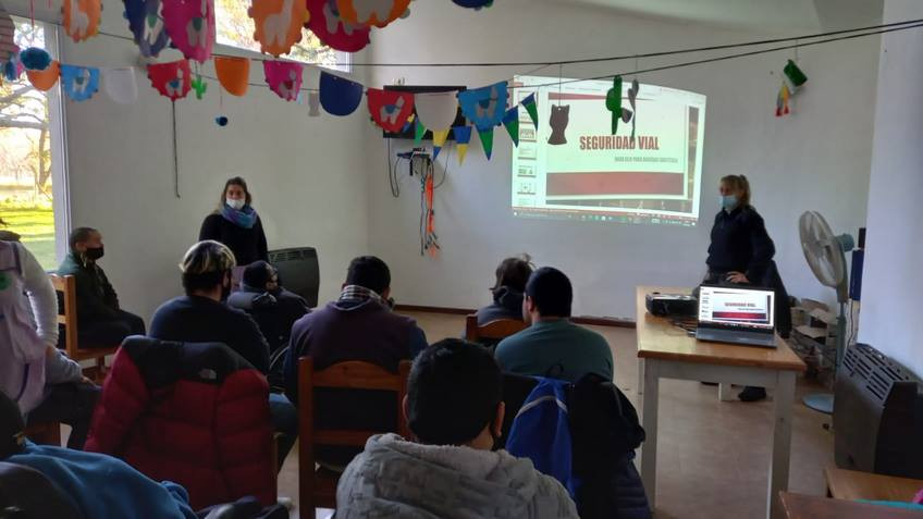 Los alumnos y docentes del Centro de Día Alihuén recibieron una capacitación este 10 de junio, Día Nacional de la Seguridad Vial. La brindaron Natalia y Gabriel, pertenecientes al área de la Dirección de Inspección General y Protección Ciudadana.