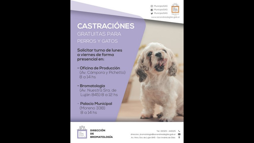 - Bromatología (Av. Nuestra Sra. de Luján 845) 8 a 12 hs