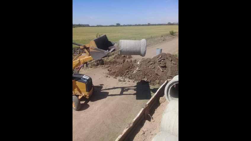 En dos caminos cercanos a la localidad de Espora, la Secretaría Municipal de Obras y Servicios Públicos reemplazó 10 caños de desagüe de 60 centímetros en un lugar y 6 caños de la misma medida en otro sector.