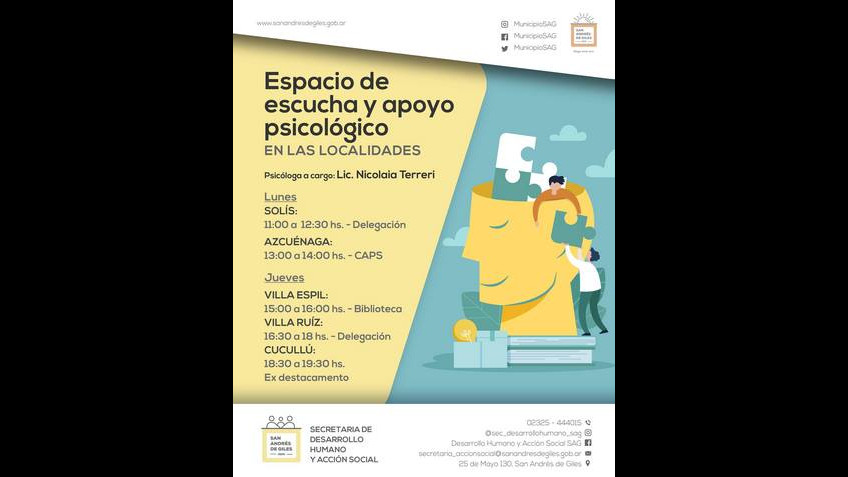 Cronograma de espacio de escucha y apoyo psicológico en las localidades rurales