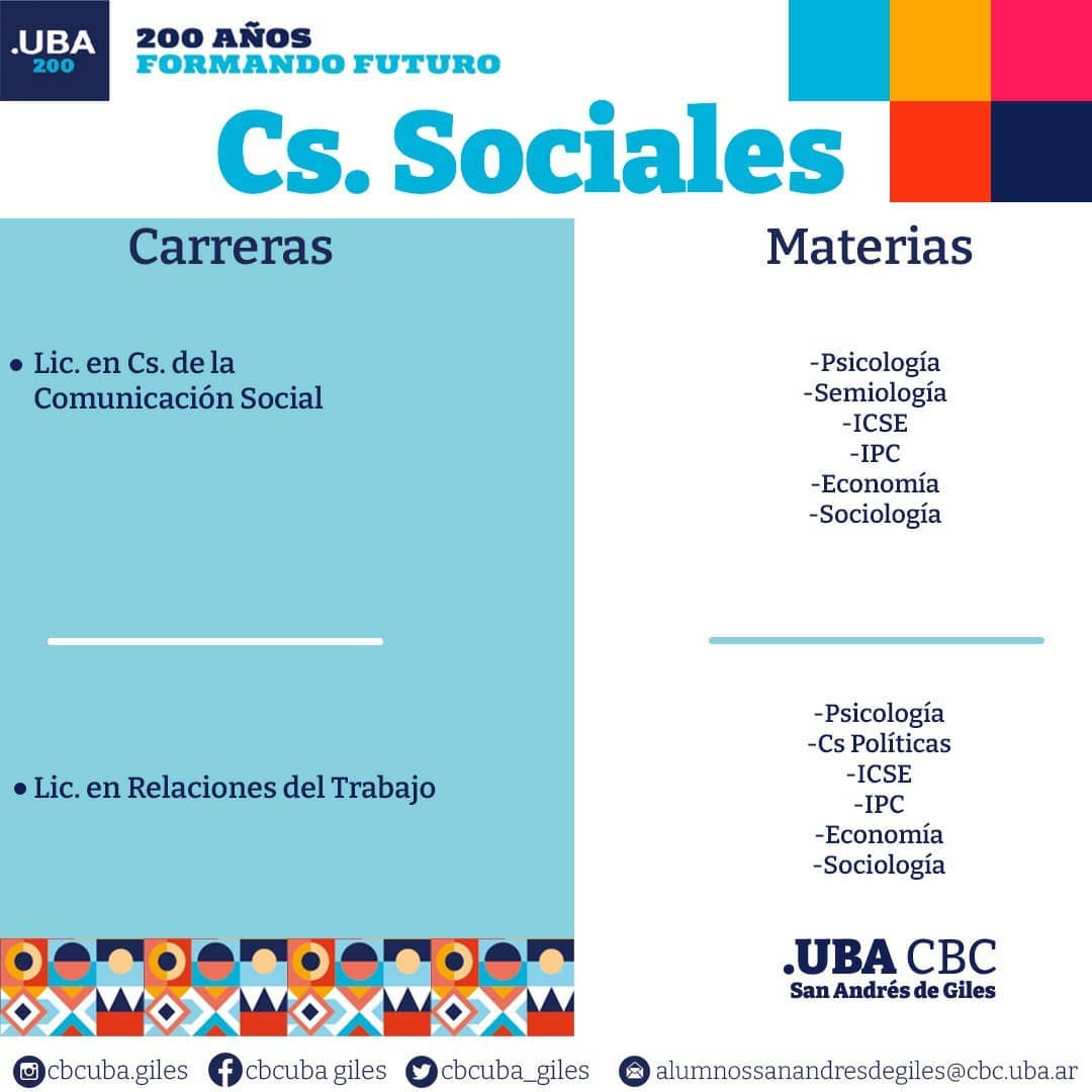 A partir de las materias ofrecidas en nuestra sede será viable, además, realizar el CBC de las carreras de Lic. en Cs. de la Comunicación Social y Lic. en Relaciones del Trabajo, pertenecientes a la Facultad de Ciencias Sociales como así también las carreras de Lic. en Economía y Administración Agrarias y Lic. en Gestión de Agroalimentos, pertenecientes a la Facultad de Agronomía.