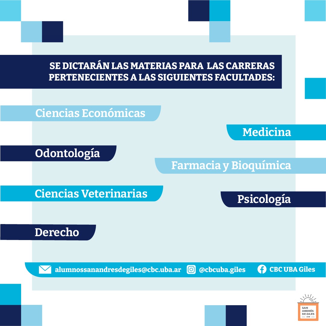 Se dictarán las materias del CBC para las carreras pertenecientes a las siguientes facultades: