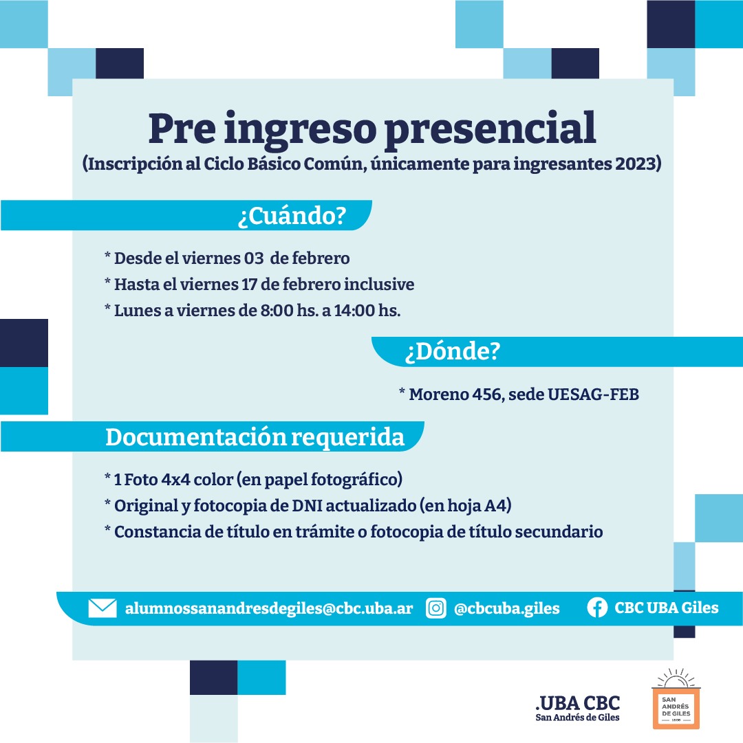 INSCRIPCIÓN AL CICLO LECTIVO 2023: DEL 3 AL 17 DE FEBRERO INCLUSIVE TANTO DE FORMA PRESENCIAL O VIRTUAL A TRAVÉS DE LA PLATAFORMA DE INSCRIPCIONES DEL CBC