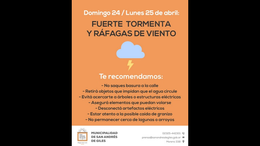 DOMINGO 24 / LUNES 25 DE ABRIL: FUERTE TORMENTA y RÁFAGAS DE VIENTO!