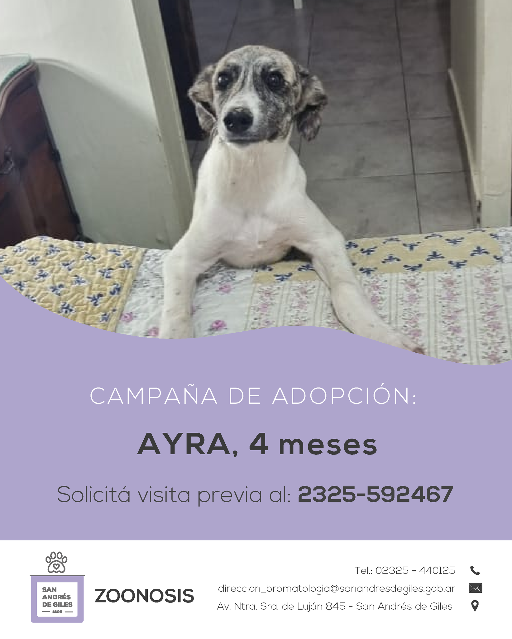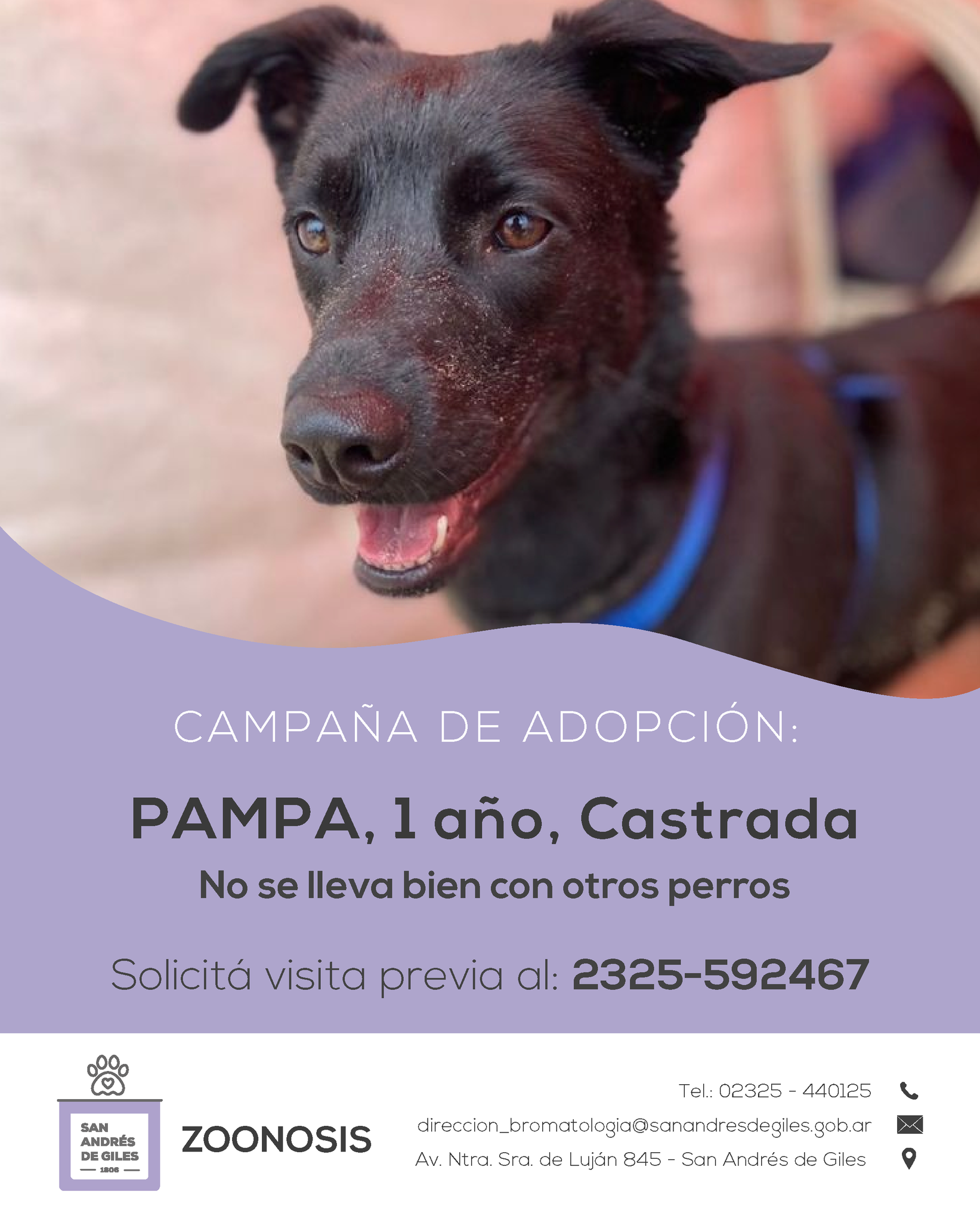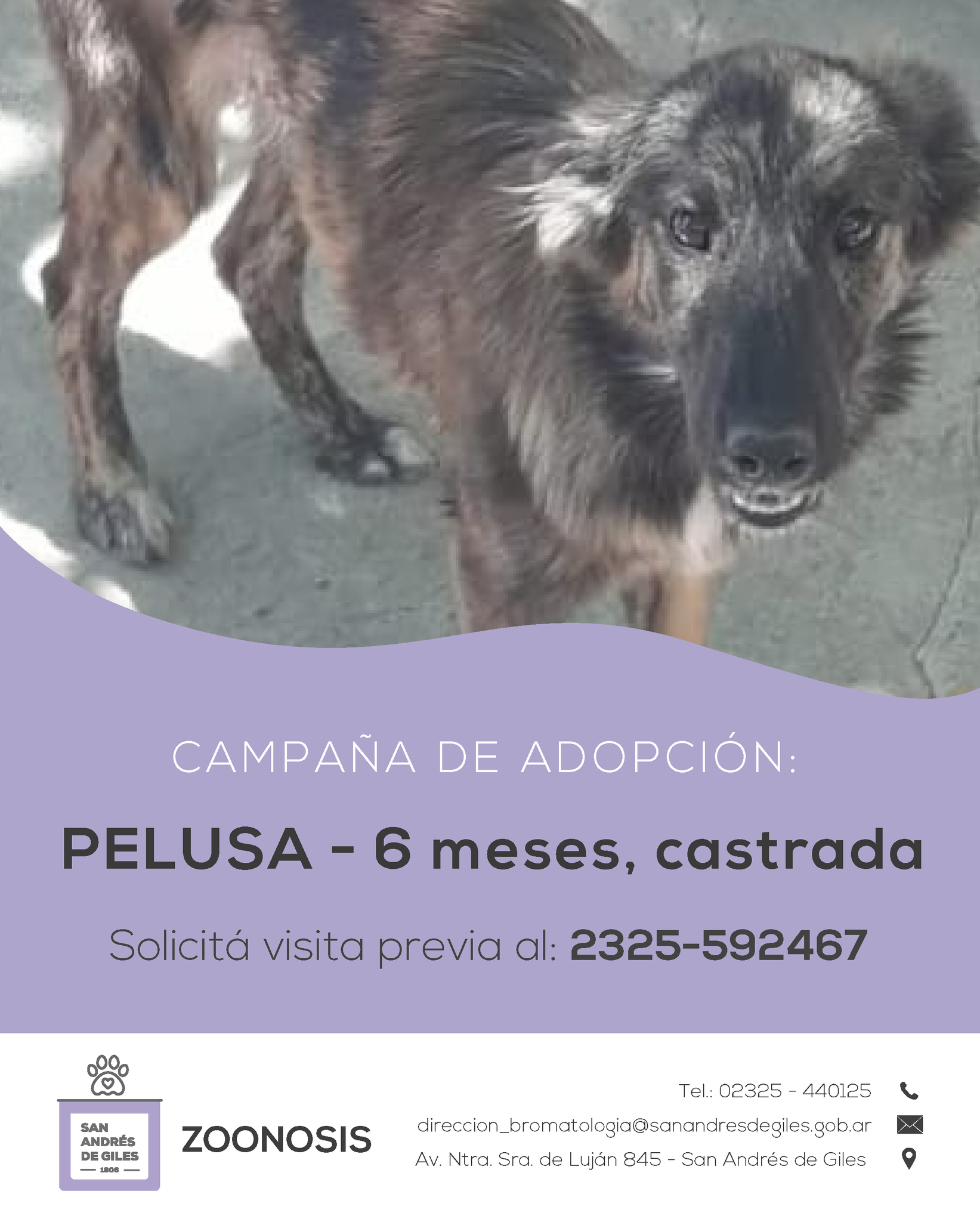 Si te interesa adoptar, para conocer los requisitos, comunicate con la Coordinadora del Centro de Zoonosis, Esmeralda Zocca, al teléfono: 2325-592467, o por medio de Instagram o Facebook a las siguientes direcciones: