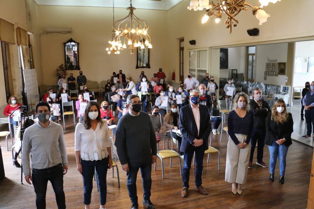 En un marco de mucha emoción, el intendente Carlos Puglelli junto al ministro de Desarrollo Agrario de la provincia de Buenos Aires Javier Rodríguez y la escribana Delegada de la provincia de Buenos Aires Elizabeth García, realizaron la entrega de 123 escrituras a familias de nuestra ciudad.