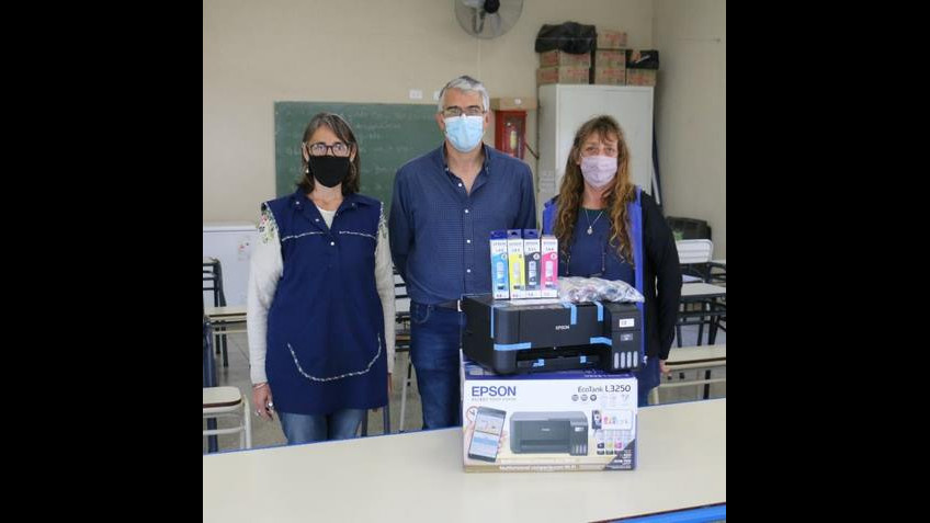 En el marco del Fondo Educativo el intendente Municipal concurrió en la mañana de hoy a la Escuela de Educación Secundaria N° 4 Estela Etchegoin de la localidad de Villa Ruiz para realizar la entrega de una impresora multifunción marca EPSON L3250 que será utilizada con fines pedagógicos y educativos por esta institución de enseñanza, resultando este equipamiento un importante recurso para la educación de los jóvenes que allí concurren.