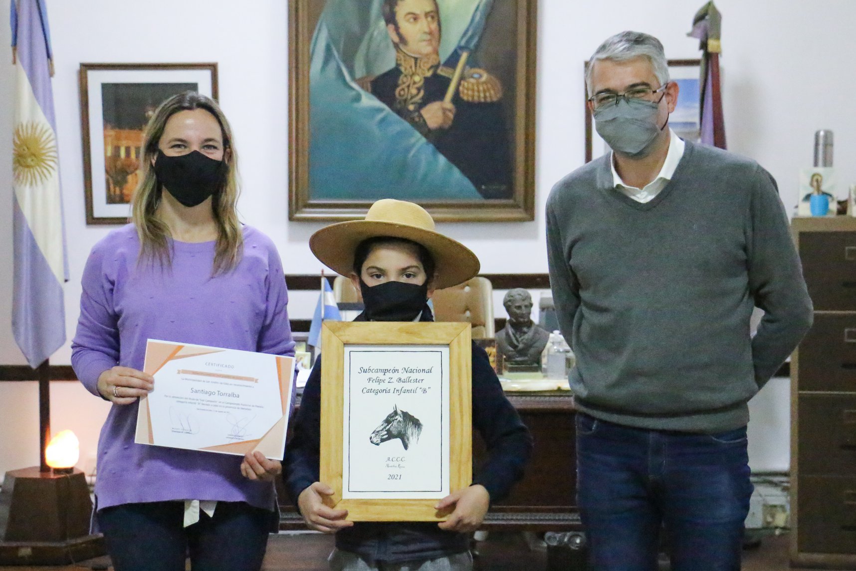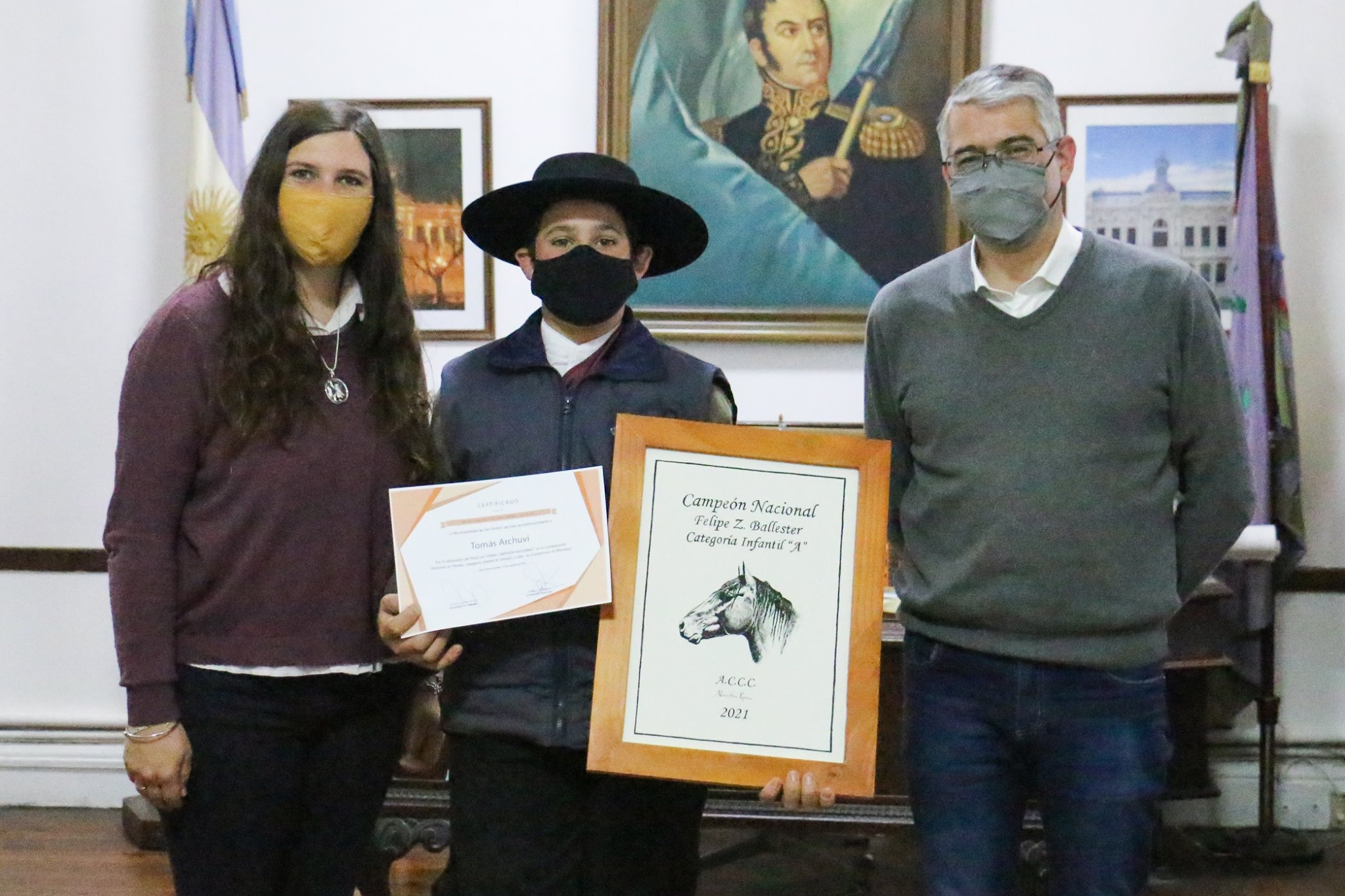 El intendente Municipal Carlos Puglelli, acompañado por el secretario de Gobierno Miguel Gesualdi, recibió en su despacho a Tomás Archuvi, reciente “Gran Campeón” del Torneo Argentino de Rienda en la categoría Infantiles A y a Santiago Torralba, subcampeón en la categoría infantiles B. Ambos jóvenes de 13 y 8 años respectivamente son representantes de la Cabaña Yancamil en el torneo realizado en la provincia de Mendoza.