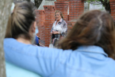 Durante el acto se colocaron ofrendas florales, se escuchó la palabra de la presidenta de la Asociación Marta Puglelli, la prosecretaria María Cristina Pizzi y Silvia Hernández que leyó un poema escrito por Marta Silva de Monti. También se descubrieron placas en homenaje a los docentes fallecidos.