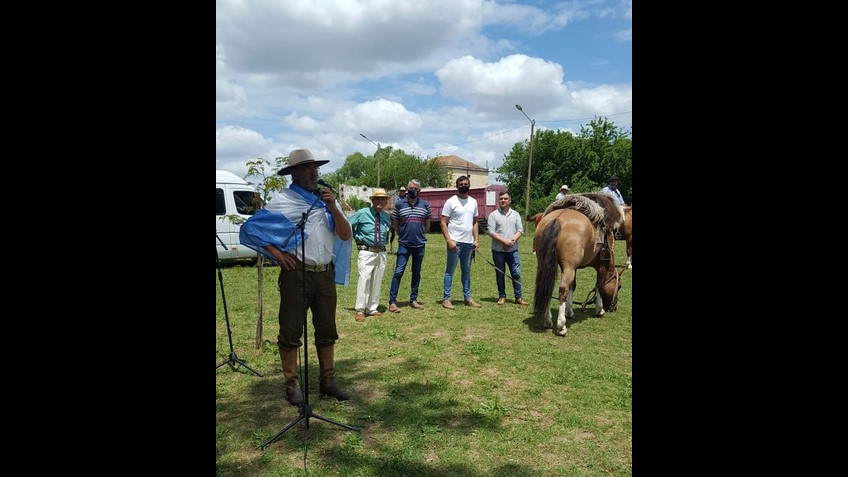 El intendente Municipal Carlos Puglleli, acompañado por el secretario de Gobierno Miguel Gesualdi y el delegado de la localidad de Azcuénaga Facundo Busca, participó este domingo del encuentro organizado por el gaucho Jorge González. en homenaje a Gerardo “El Tigre” Medina paisano de la ciudad de Pehuajó que cabalgó más de 14.000 kilómetros en sus caballos “Gato y Fantasma” a lo largo del país.