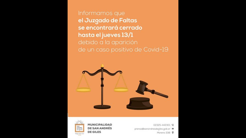 Informamos que el Juzgado de Faltas se encontrará cerrado hasta el jueves 13/1