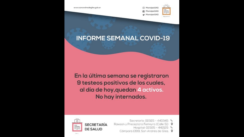 En la última semana se registraron 9 testeos positivos de los cuales, al día de hoy, quedan 4 activos.