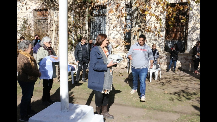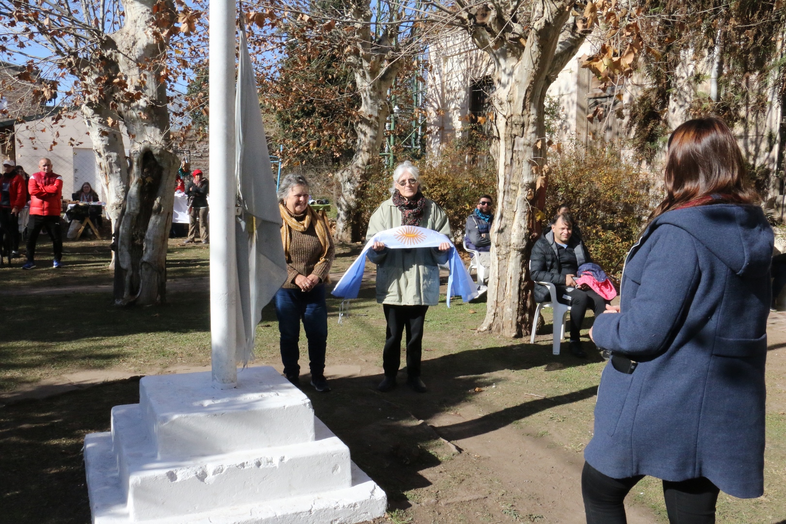 Estuvo presente la secretaria de Gobierno Verónica Di Tata, quien acompaño el acto protocolar en el que se realizó en cambio de la bandera de la Vieja Escuela, junto a ex alumnas de la institución.