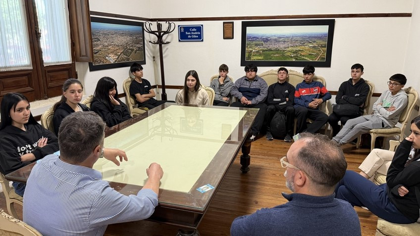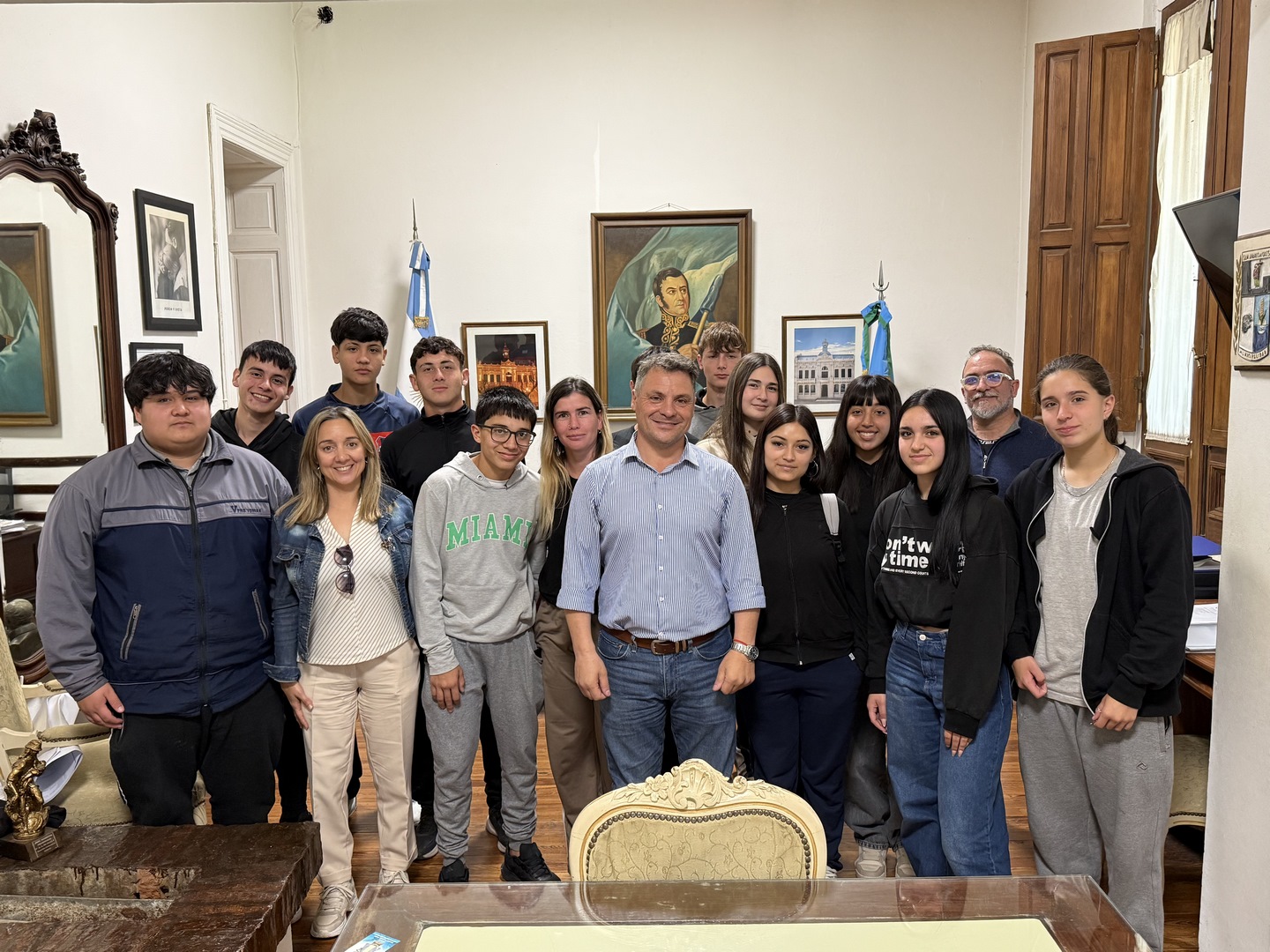 Alumnos de 4° Año de la Escuela de Educación Secundaria N° 1 "30 de Noviembre", acompañados por las docentes Natalia Bartucci y Claudia Castro, estuvieron presentes en el edificio municipal. Dialogaron con el intendente Miguel Gesualdi y el secretario de Gobierno, Bautista Castaños sobre el funcionamiento del Departamento Ejecutivo, que es uno de los organismos en los que se mostraron interesados en conocer. Seguirán con su tarea educativa recorriendo otras instituciones.