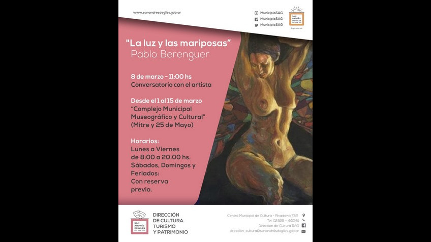 Habrá un conversatorio con el artista el día 8 de marzo a las 11 hs. en el Complejo Museográfico y Cultural (25 de Mayo y Mitre) y en el mismo lugar estará disponible la muestra del 1 al 15 de marzo de lunes a viernes de 8 a 20 hs. y los sábados, domingos y feriados con reserva previa.