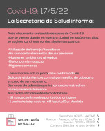 La normativa actual para caso confirmado es 5 días de aislamiento y control por médico de cabecera en caso de ser necesario. Se recuerda además que los contactos estrechos no requieren aislamiento.
