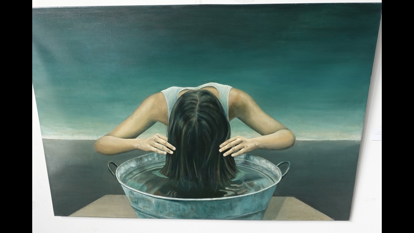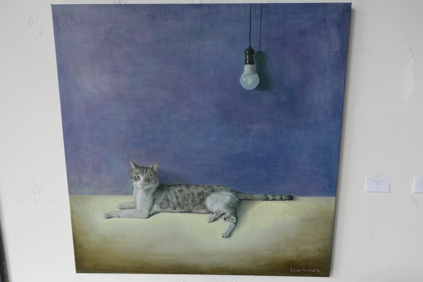 Mariano, entre otros reconocimientos, ganó el primer premio en 2019 de nuestro Salón Anual de Pintura “Enrique José de Larrañaga” con su obra “Luz es tu palabra”. Esa pintura encabeza un recorrido de 13 obras, la mayoría pintadas al óleo y otras en acrílico.