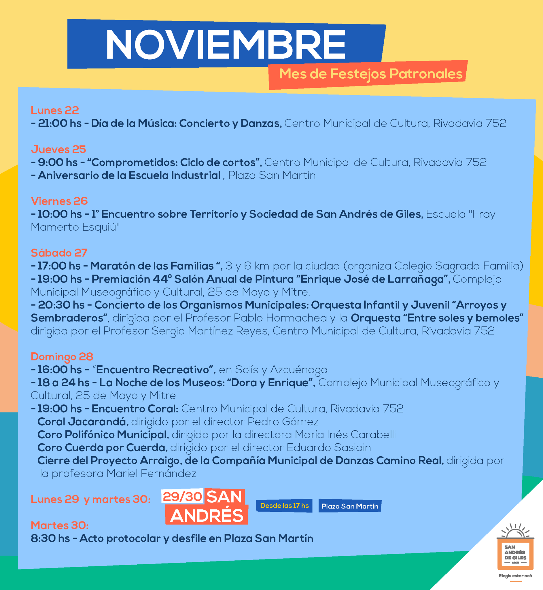Noviembre: cronograma de las Fiestas Patronales de nuestra ciudad