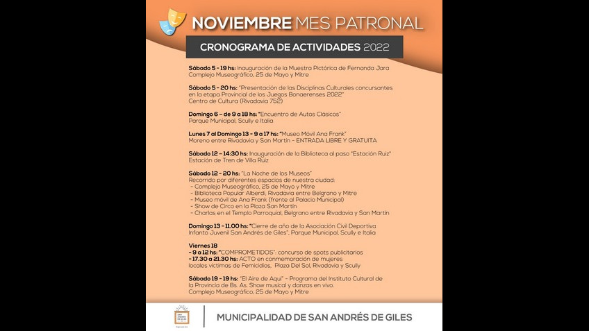 NOVIEMBRE, MES PATRONAL - Cronograma de actividades 2022