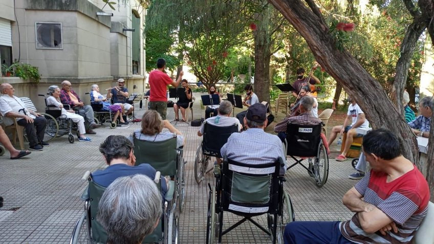 La Orquesta Sinfónica Municipal "Entre soles y bemoles" dirigida por el Prof. Sergio Martínez Reyes dió un concierto en el Hogar Geriátrico el día sábado 30 de octubre por la tarde.