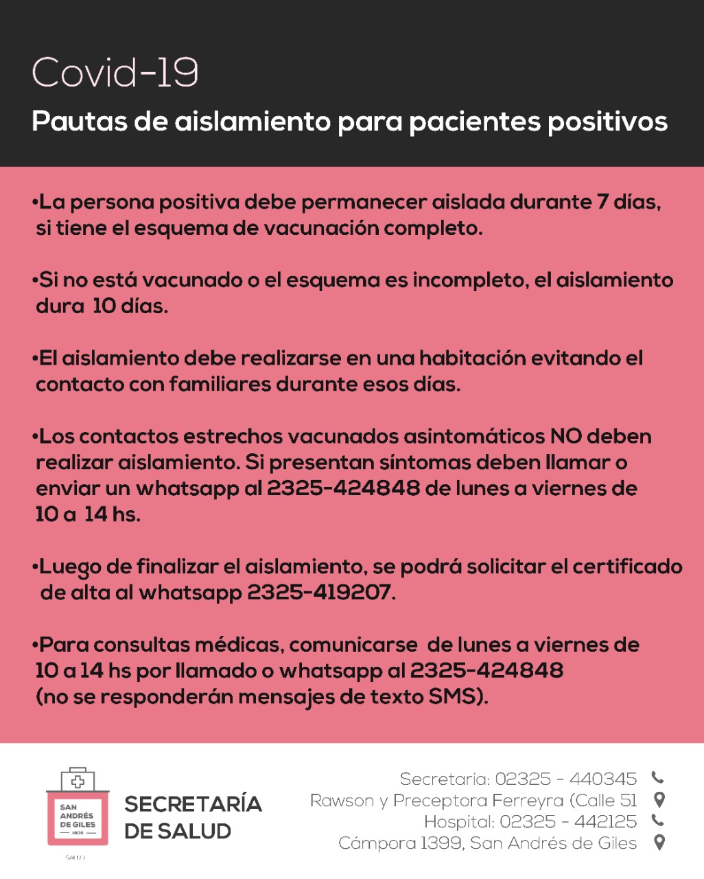 Pautas de aislamiento para pacientes positivos