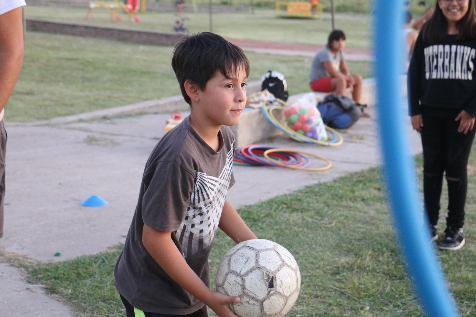 En la plaza Santiago del Estero, los niños disfrutaron el miércoles 15 de la continuidad del Programa RECREATE de la Dirección de Deporte.
