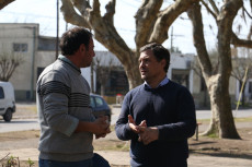 El intendente Miguel Gesualdi visitó la plaza Mitre y se interiorizó de la marcha de su renovación con el encargado de Espacios Verdes, Adrián Garaglia.