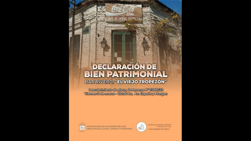 En el Bar Rivero, “El Viejo Tropezón”, se colocará una placa donde se podrá leer que el lugar fue considerado Bien Patrimonial de San Andrés de Giles.
