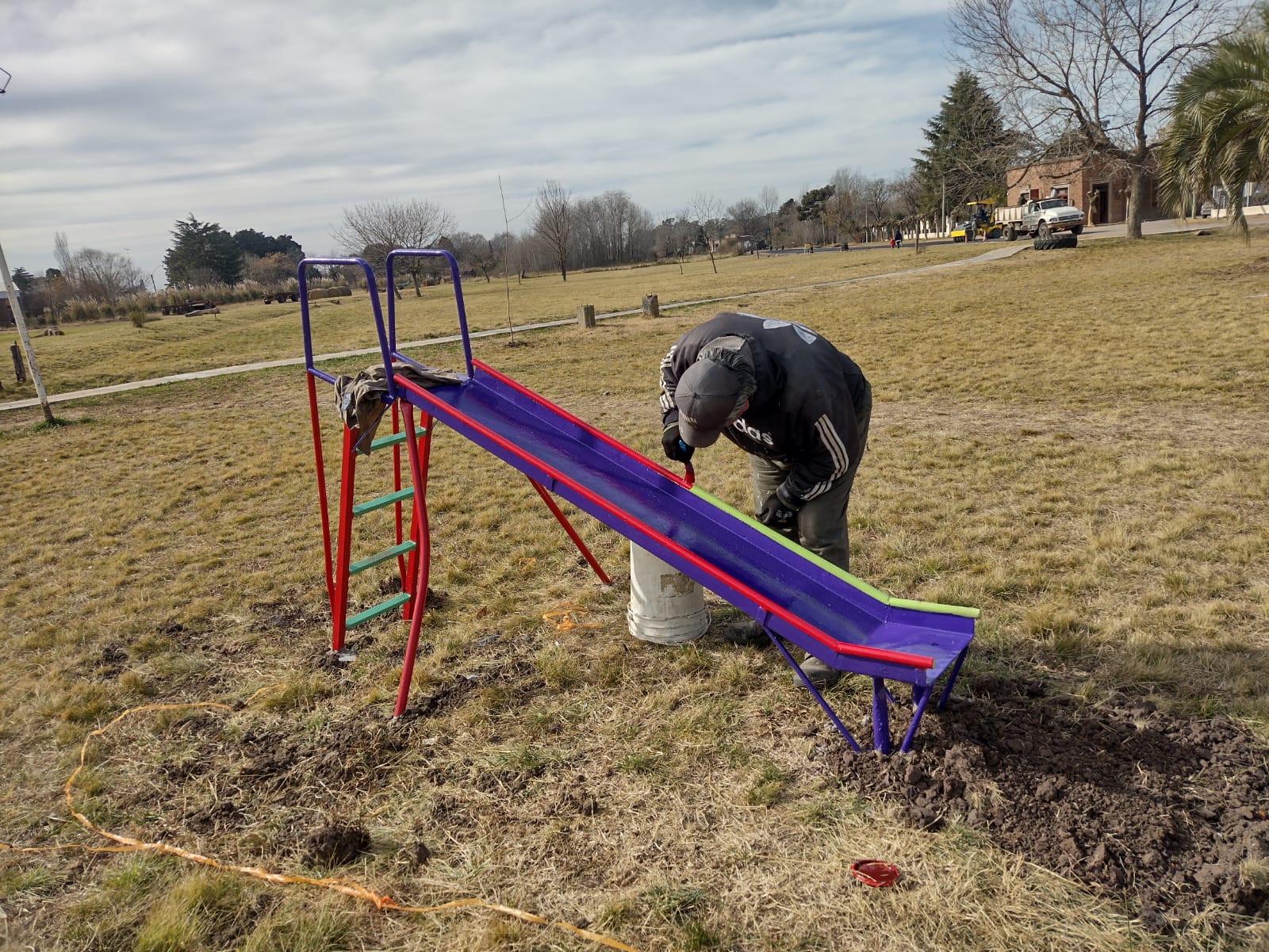 Las tareas de forestación y colocación de juegos están a cargo de la Delegación Villa Ruiz que conduce José Bello.